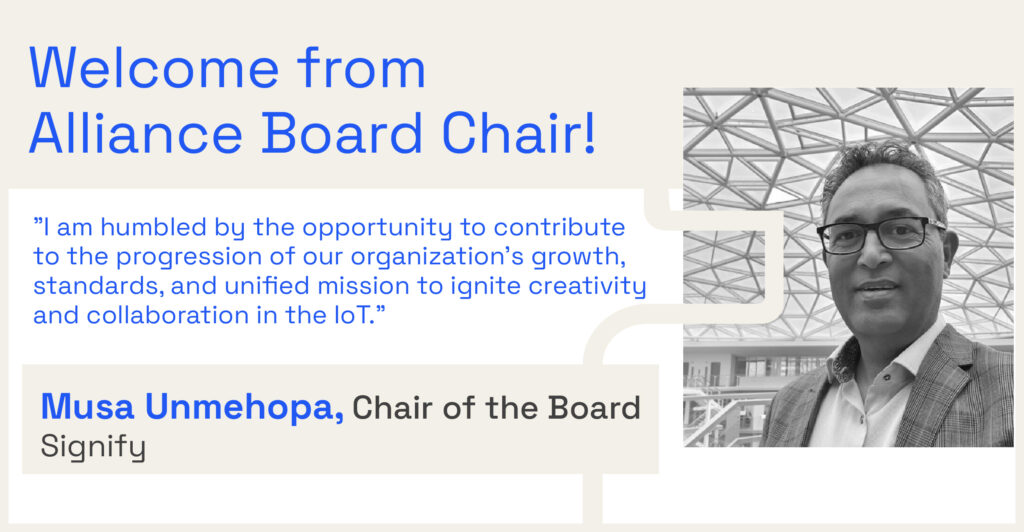 Since taking on the position of Board Chair, I have dedicated my time to engaging with our dedicated staff and industry leaders, as well as connecting with our membership. I am humbled by the opportunity to contribute to the progression of our organization’s growth, standards, and unified mission to ignite creativity and collaboration in the IoT.